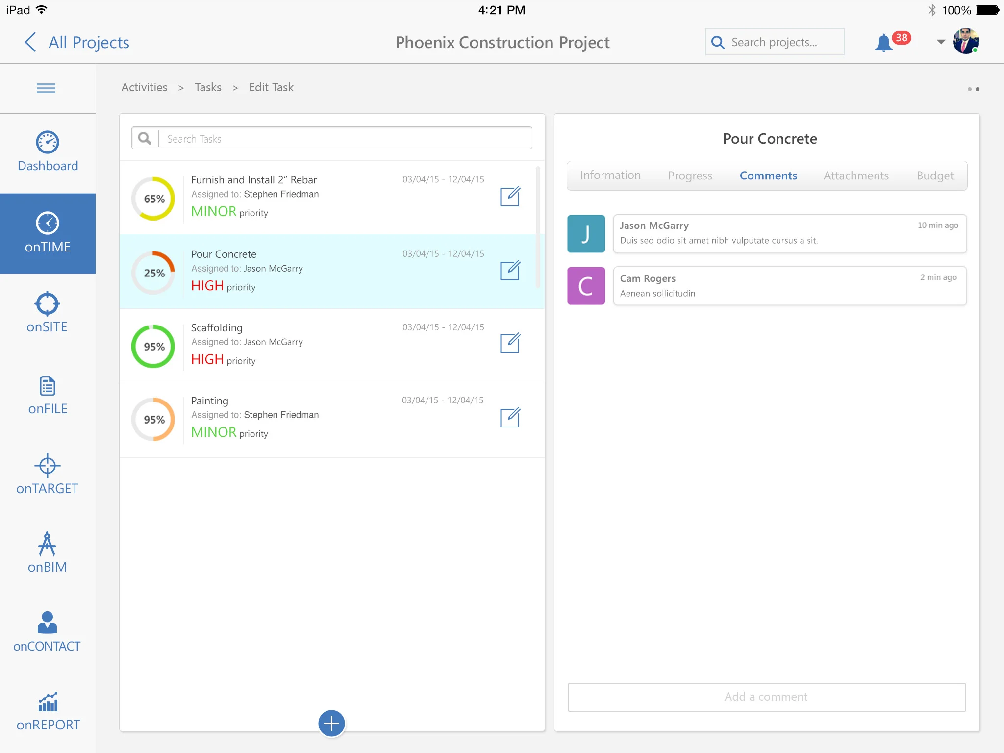 OnTarget is a project management app that streamlines communication in construction projects by connecting field to office with real-time updates and access to all information on a digital platform. With a web app already available, OnTarget decided to launch an iPad app which would be more convenient for users on the move.